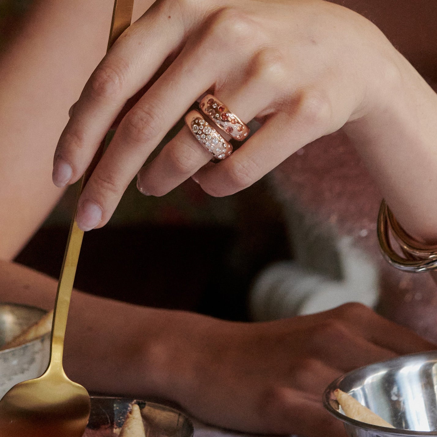 Bei Bron verleihen kleine, funkelnde Diamanten unseren Ringen das gewisse Etwas – dezent integriert oder als Pavé-Akzente. Eine Ausnahme bilden unsere Stardust Ringe, bei denen das Diamantpavé im Mittelpunkt steht.