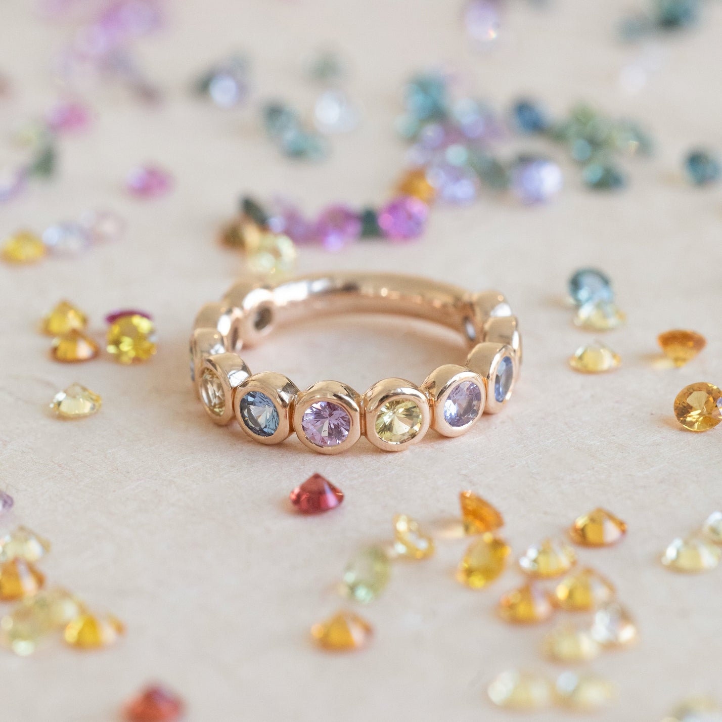 Der Saphir wird wegen seines tiefen Glanzes und seiner außergewöhnlichen Haltbarkeit geschätzt. Während der königsblaue Farbton am bekanntesten ist, erkundet Bron das gesamte Farbspektrum des Saphirs. Von weichen Pastelltönen bis hin zu lebendigen Farbtönen, die oft in einzigartige Farbkompositionen übergehen – wie bei unseren Konfetti-Designs. Die Vielseitigkeit des Saphirs macht ihn zu einer perfekten Wahl für jeden Stil.