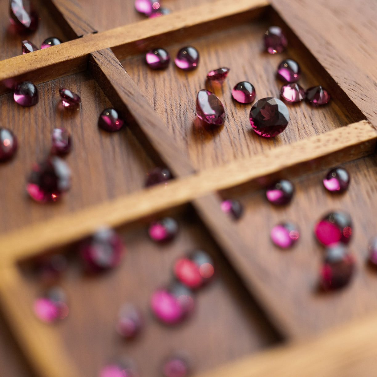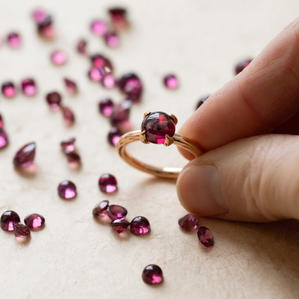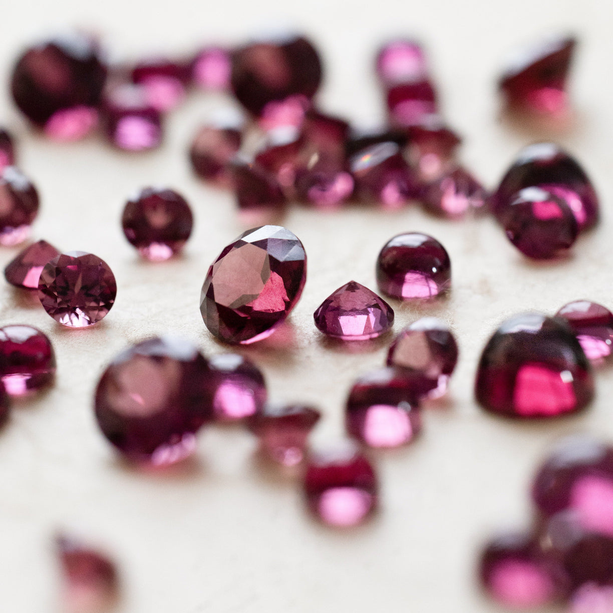 Der Rhodolith ist ein Mineral aus zwei Granatarten – Almandin und Pyrop –, die ihm seine prächtigen Farben verleihen. Er ist ein „augenreiner“ Edelstein, das heißt, Einschlüsse sind mit bloßem Auge nicht zu erkennen. Tief im Inneren des Steins befinden sich jedoch sehr feine Kristallfäden – „Seideneinschlüsse“ –, die ihm seinen wunderbaren Glanz verleihen. Vielleicht war es diese hypnotisierende Wärme, die den Rhodolith zum „Star der Granate“ machte.