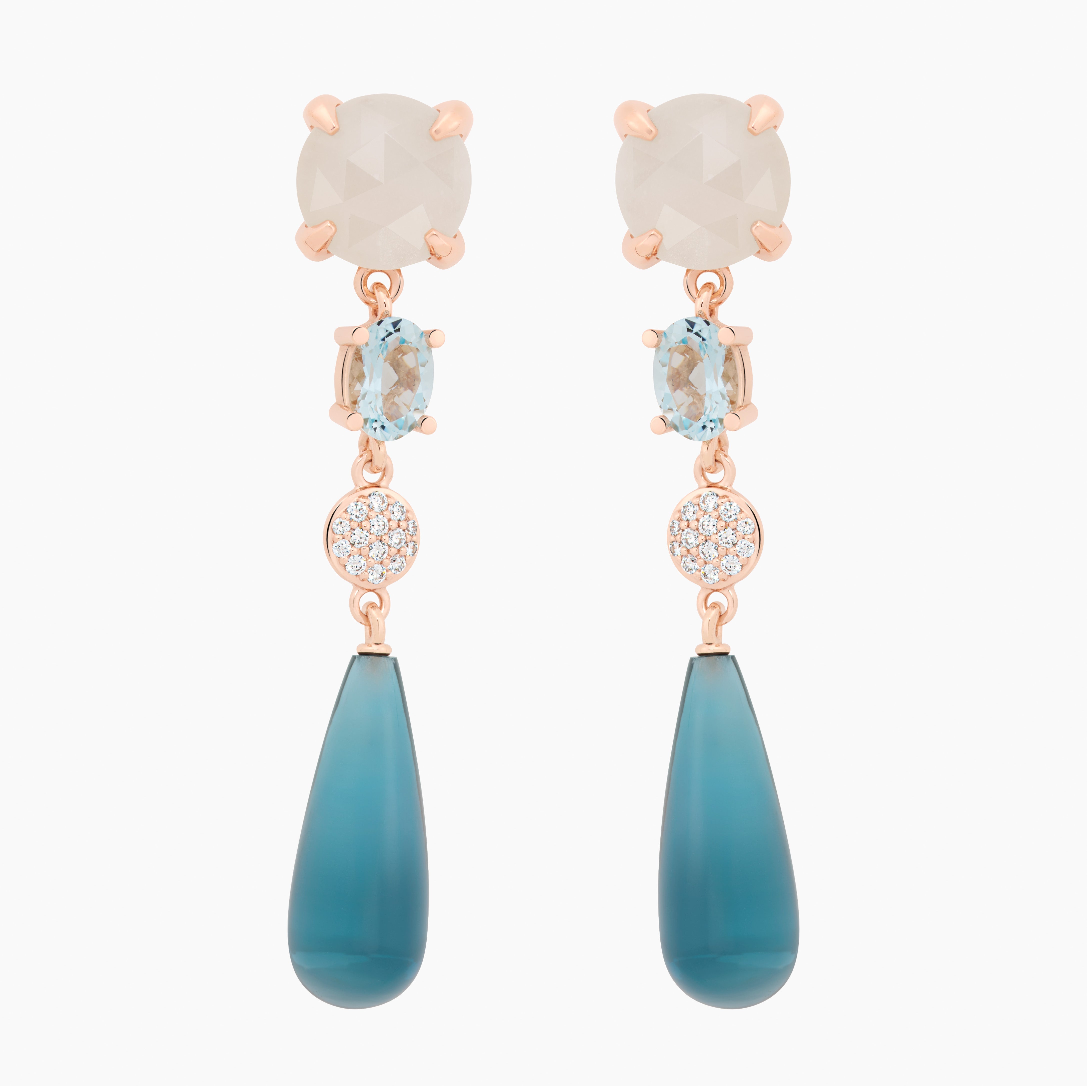 mit weißem Mondstein im Briolett-Schliff, facettiertem Aquamarin und London Blue Topas