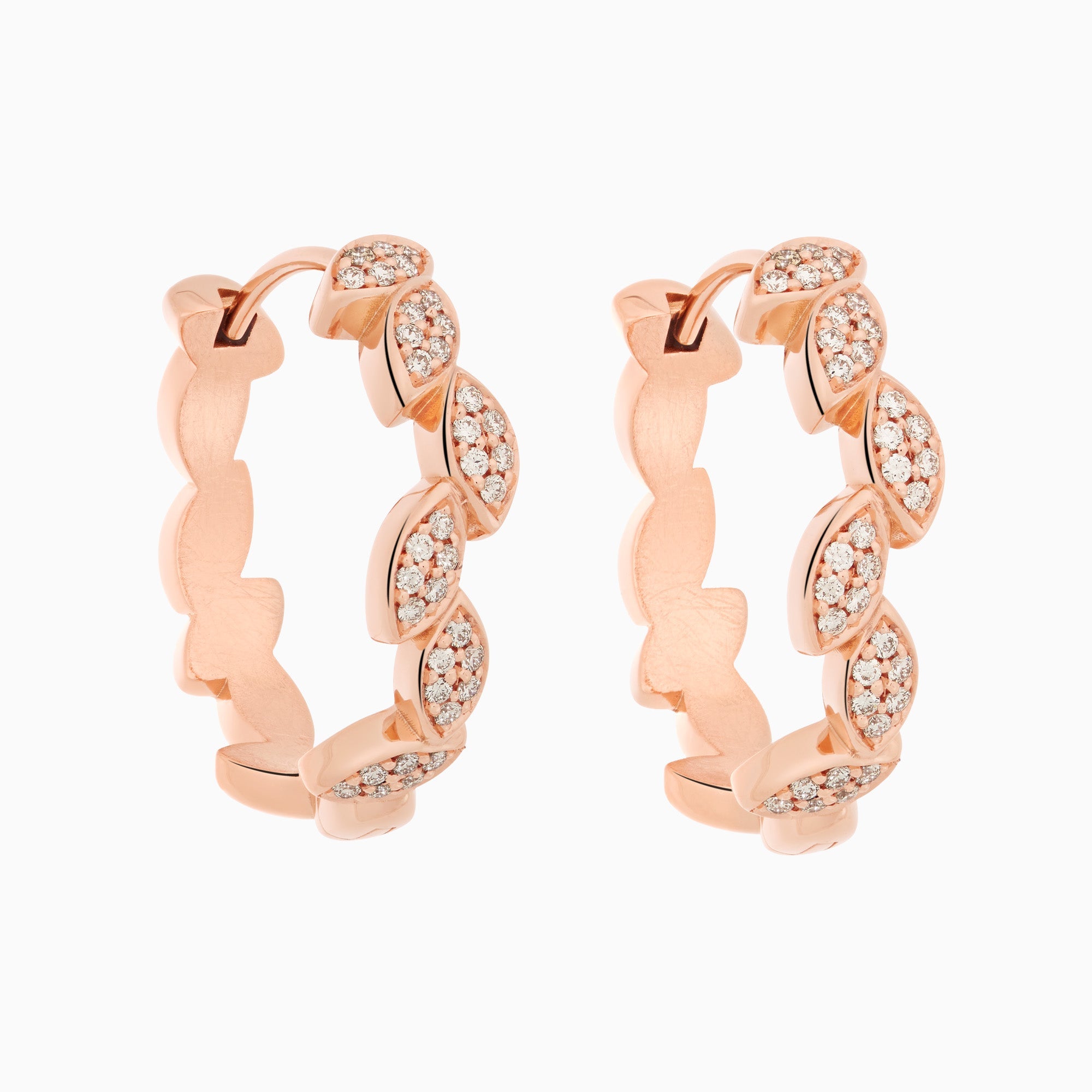 Zarter Ohrring aus einem Kranz aus Blütenblättern - alle mit weißen Diamanten besetzt.