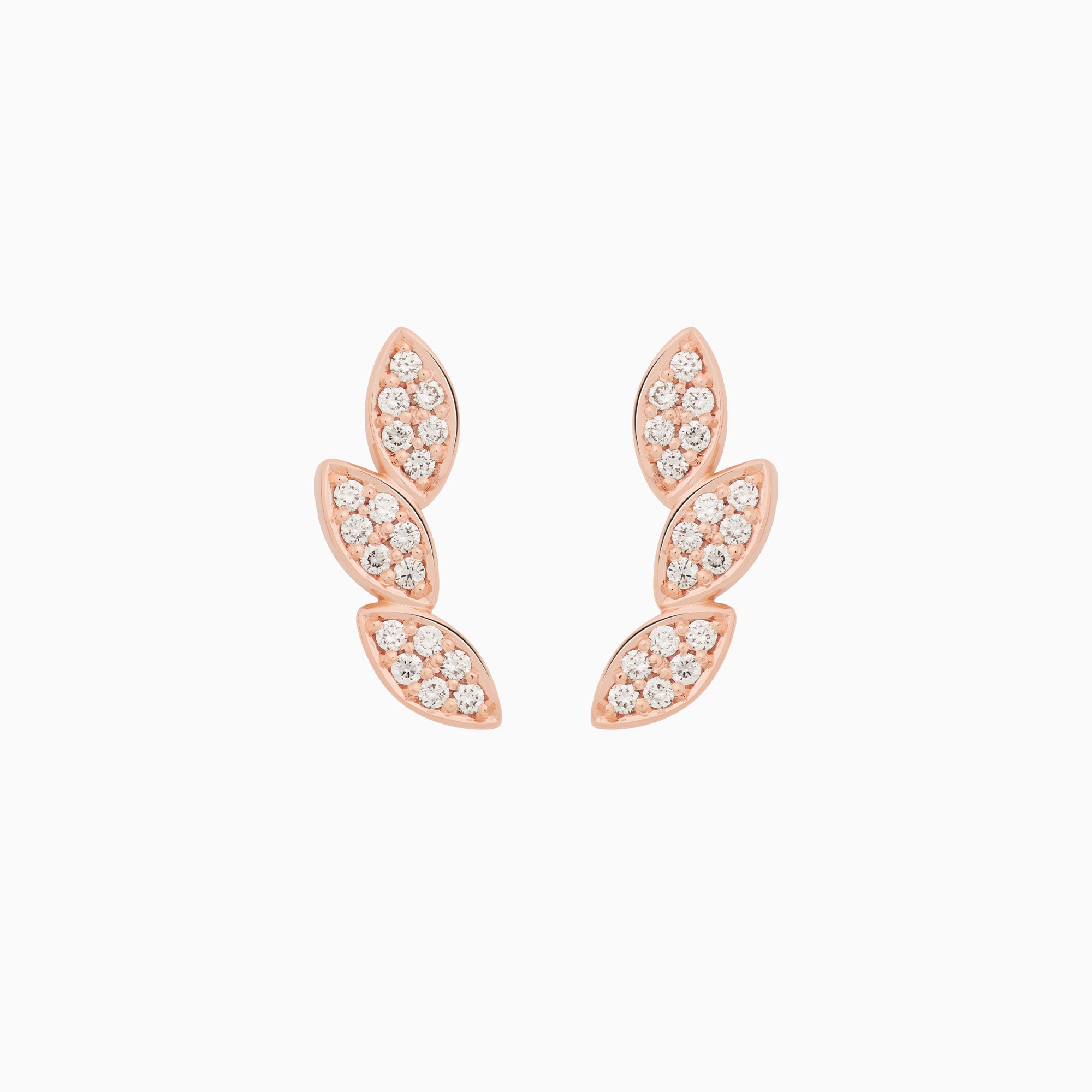 Climber-Ohrring mit drei kleinen, mit Diamanten besetzten Blütenblättern.