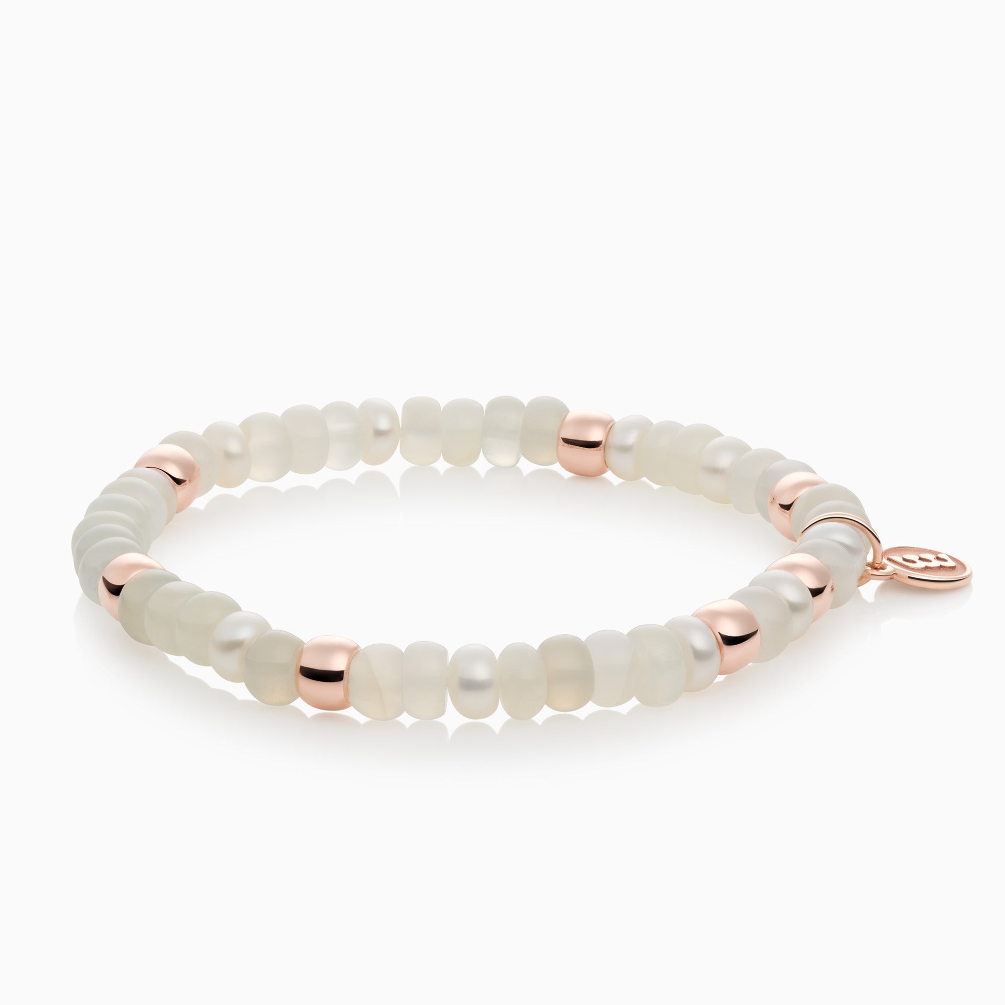 Diese Edelsteinarmbänder mit sieben goldenen Kugeln und einem Bron-Anhänger werden in limitierter Auflage in ständig wechselnden Farben gefertigt.