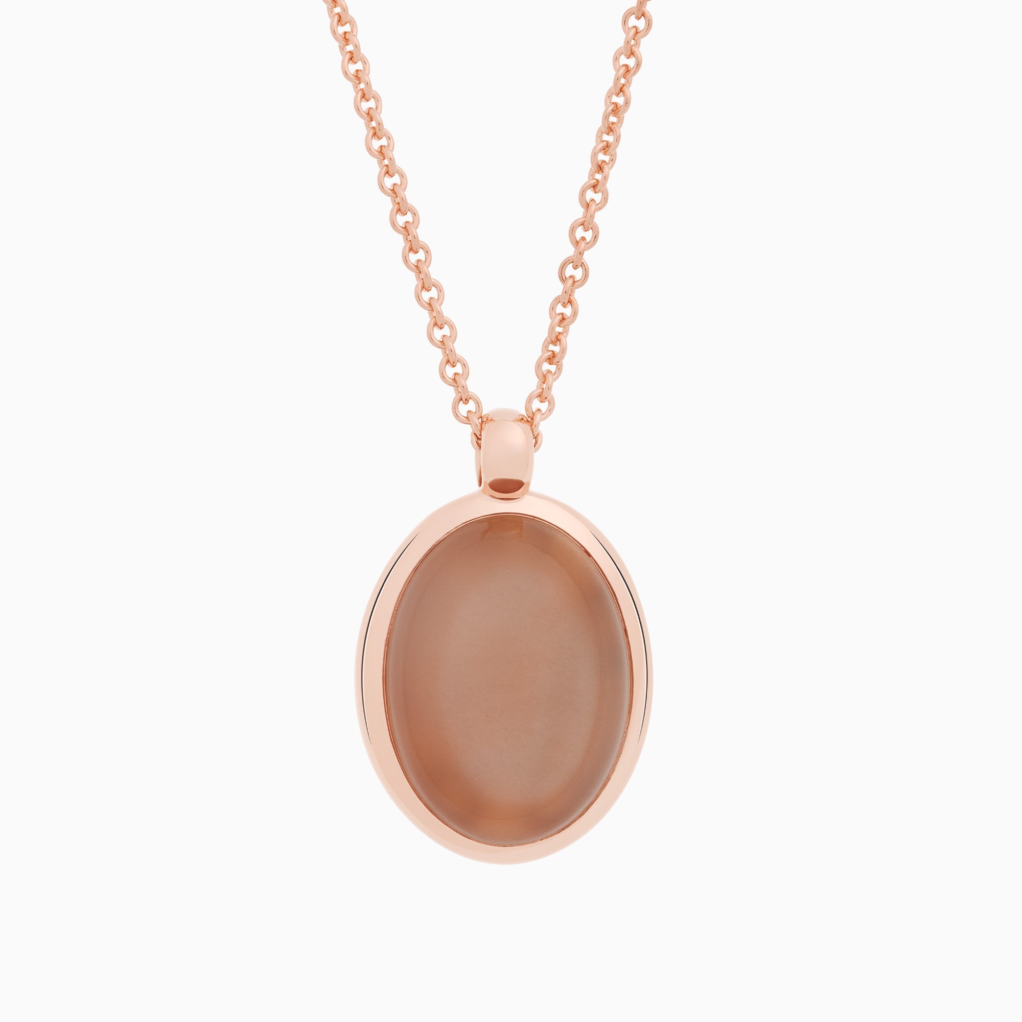 Mondstein im Cabochon-Schliff, umhüllt von einer massiven Goldfassung. Starke Dimensionen, dezente Ausstrahlung.