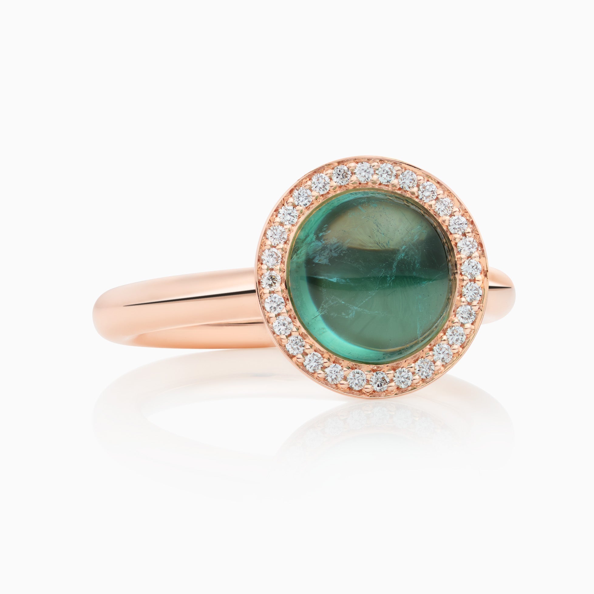 Dieser Sushi Ring ist mit einem 9 mm großen Edelstein ausgestattet, der speziell für die exquisiten Turmaline entwickelt wurde, die sorgfältig in dieser Größe ausgewählt wurden.
