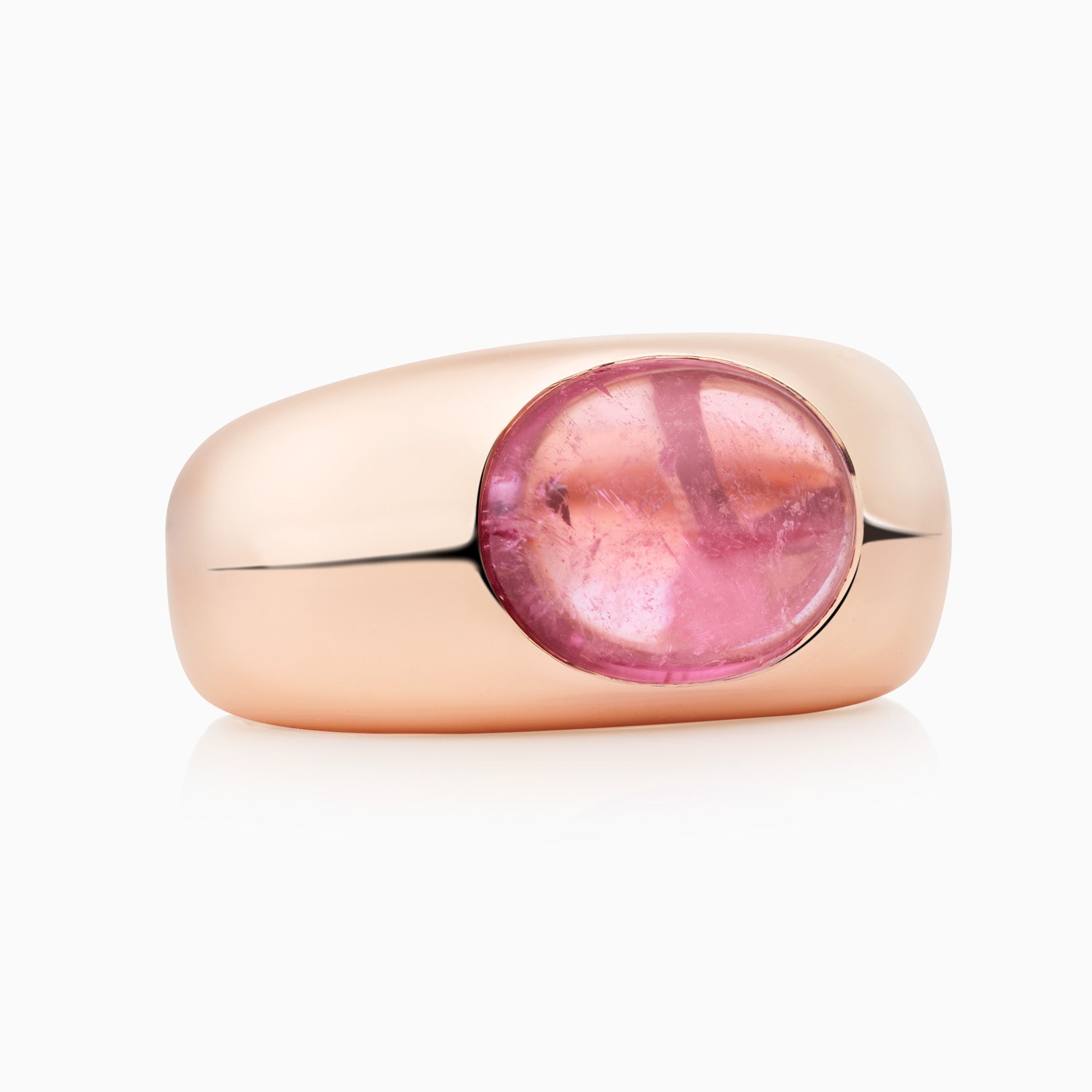 Gold hat eine hohe Dichte - Sie werden sein Gewicht spüren, wenn Sie diesen massiven Ring mit Cabochon-Turmalin aufstecken. Schwer und doch unglaublich bequem dank seines skulpturalen Designs.