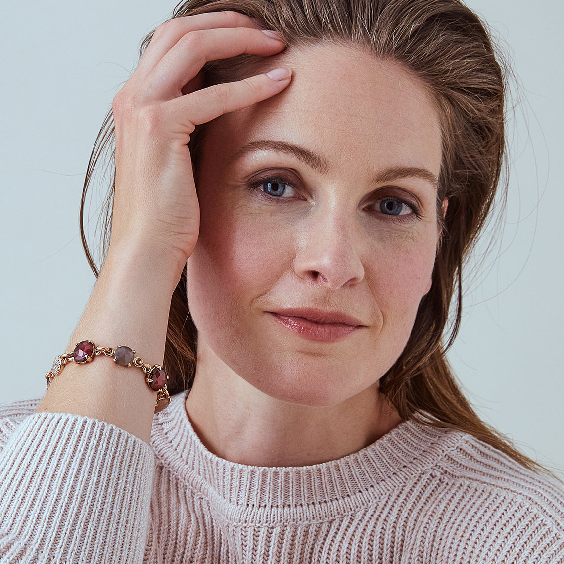 Ein einzigartiges Armband mit einer wunderbaren Kombination aus Mondstein und Hessonit im Briolett-Schliff.