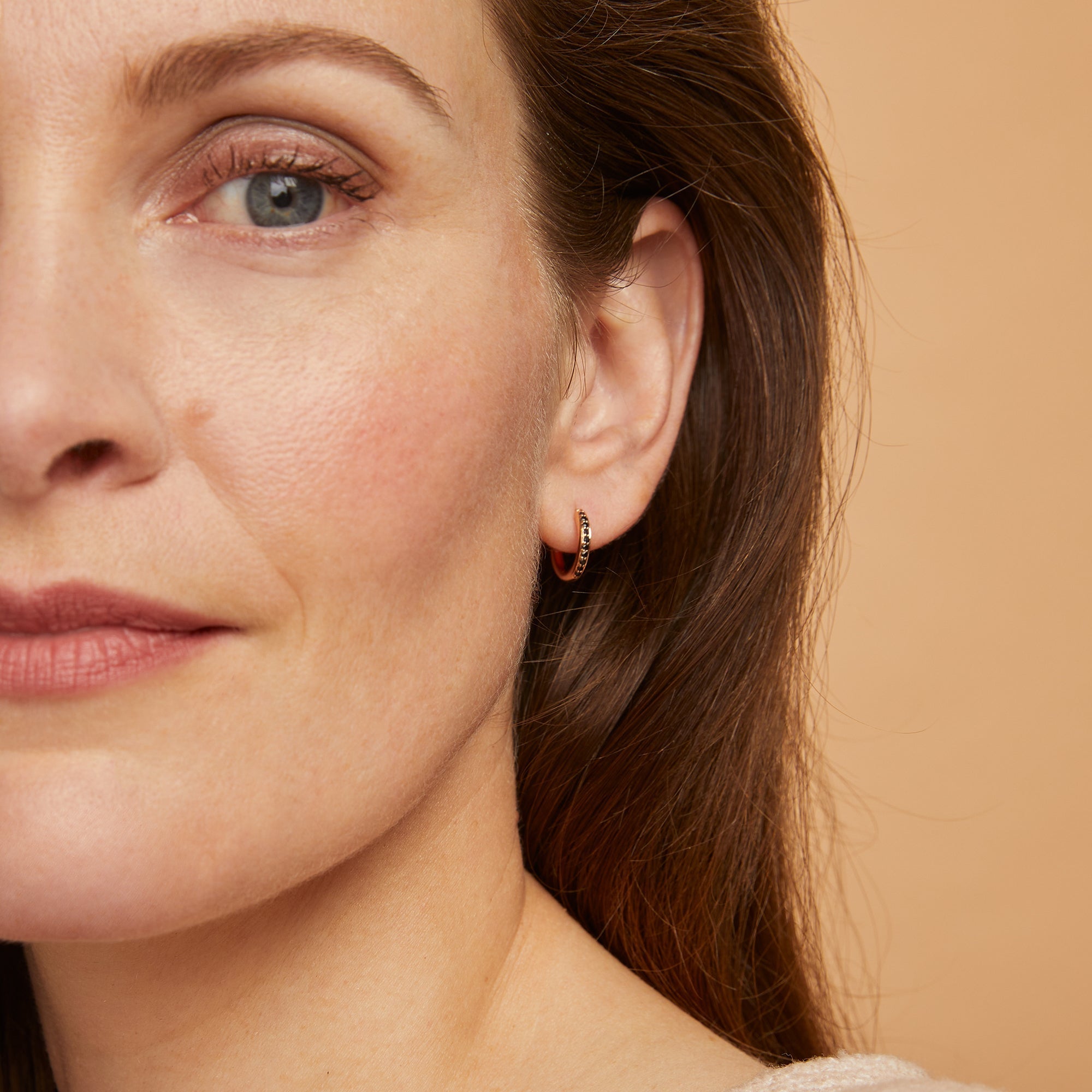 Diese coolen Creolen mit schwarzen Saphiren vervollständigen die Bron-Kollektion. Tauschen Sie die Einhänger aus für verschiedene Looks und Anlässe.